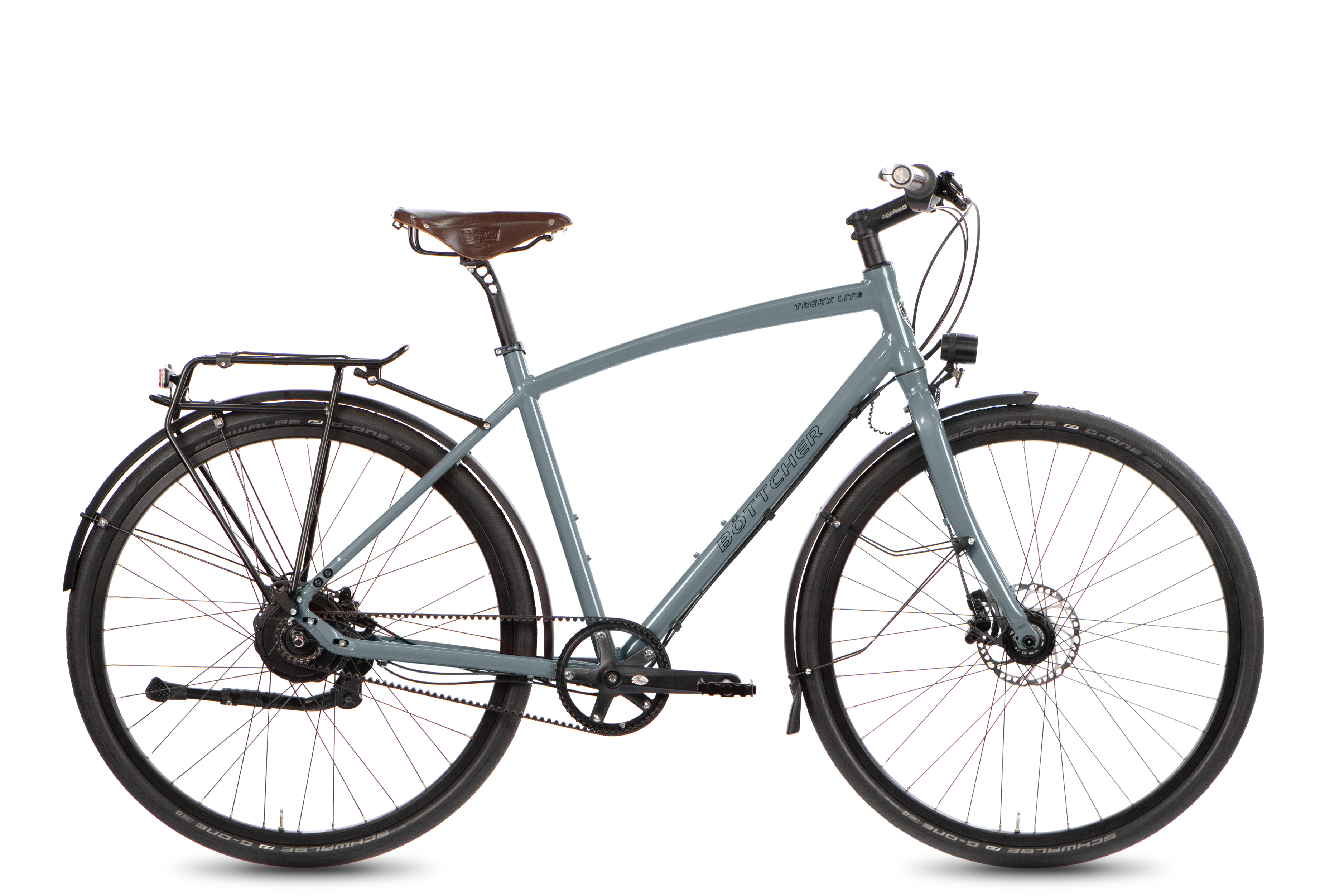 Durch die hochwertigen Komponenten – egal ob 28“ Laufräder, Schwalbe Marathon Reifen oder den Shimano DISC-Bremsen – macht das Trekk Lite in jeder Fahrsituation eine gute Figur. Durch die sportlich moderaten Geometrien haben Sie eine entspannte Sitzposition. Die Rahmenöffnung am Hinterbau ermöglicht die Verwendung eines Riemens von Gates. Der Lenker, die Griffe und der Sattel sind ergonomisch geformt und dienen als gute Unterstützung auf längeren Touren. Mit der eleganten Optik, kombiniert mit sicherem Fahrverhalten und langlebiger Technik, haben wir ein zuverlässiges Trekkingrad geschaffen. Egal ob für den Alltagseinsatz oder für längere Touren, mit diesem Fahrrad sind Sie mobil, flexibel und sicher unterwegs. Genießen Sie das Gefühl grenzenloser Freiheit mit Ihrem individuell zusammengestellten Böttcher Trekk Lite.