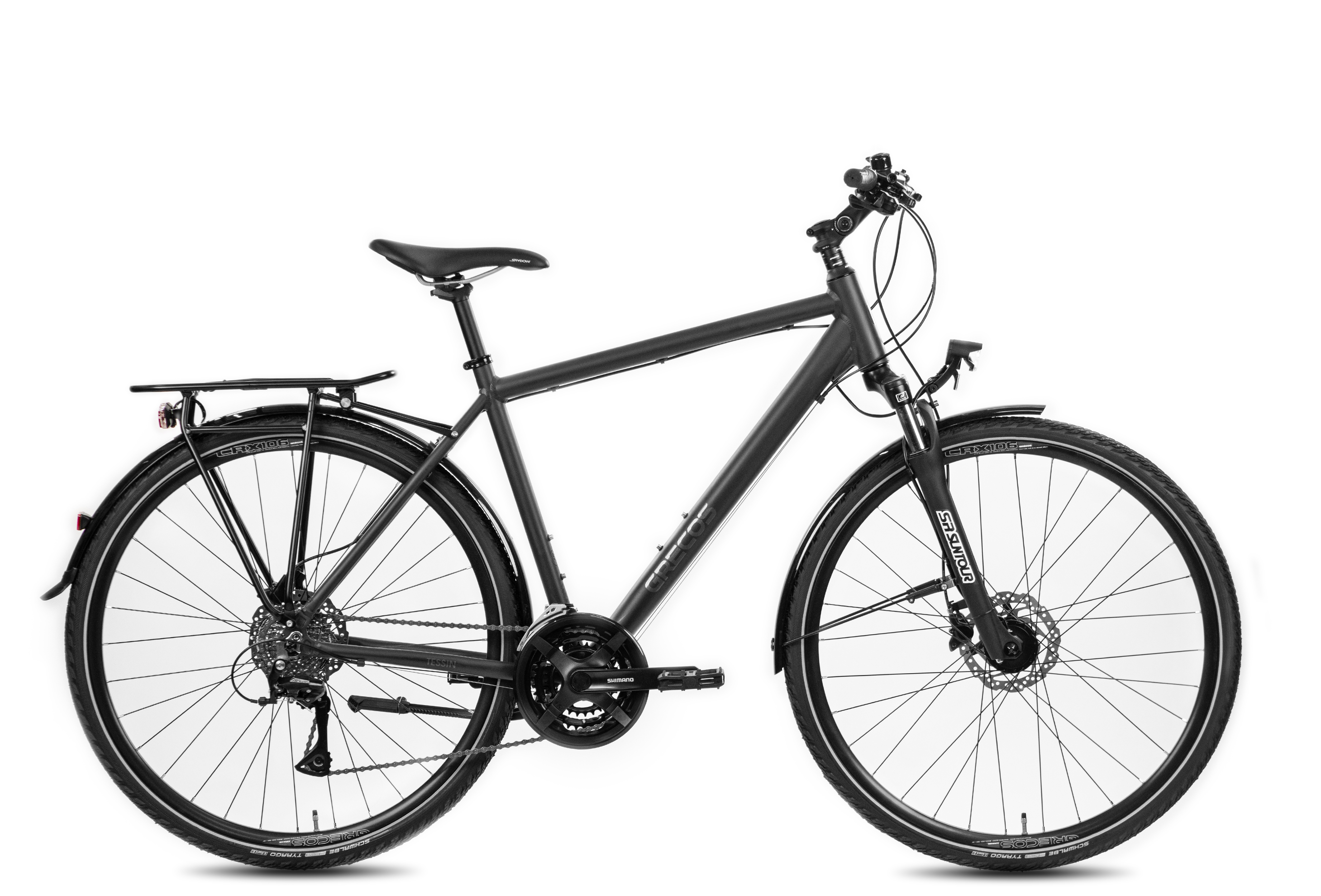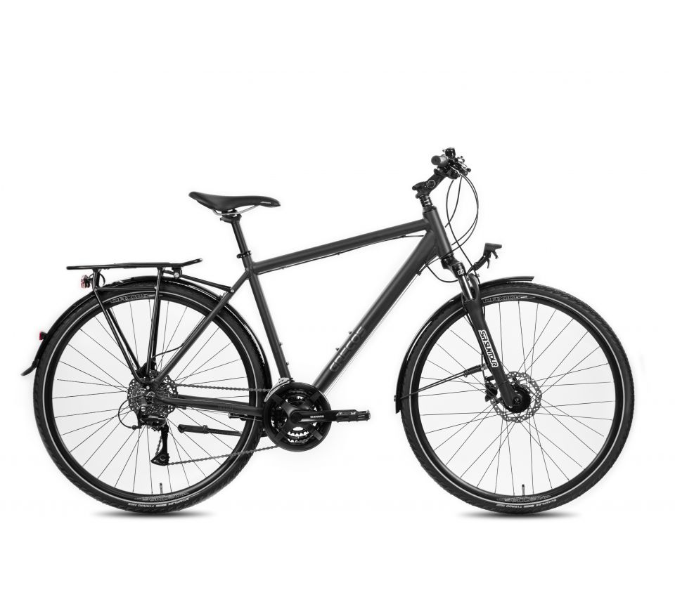 Das Herzstück des Grecos Tessin ist ein edler Rahmen mit optimaler Geometrie für Kurz- und Langstrecken. Dieses Trekkingrad stellt sich jeder Herausforderung, von ausgiebigen Wochenendausfahrten bis zur täglichen Fahrten zur Arbeit. Ein Versprechen, das die weitere Ausstattung einlöst: Hochprofil-Hohlkammer Felgen, geschmeidige und zuverlässige Shimano Alivio 24-Gang Schaltung und die kraftvollen, wetterunabhängigen Hydraulik-Scheibenbremsen. Es ist die perfekte Wahl für alle, die ein hochwertiges Trekkingrad für den Allroundeinsatz suchen. Schlechtes Wetter, falsche Jahreszeit – mit dem Tessin gibt es keine Ausreden mehr.